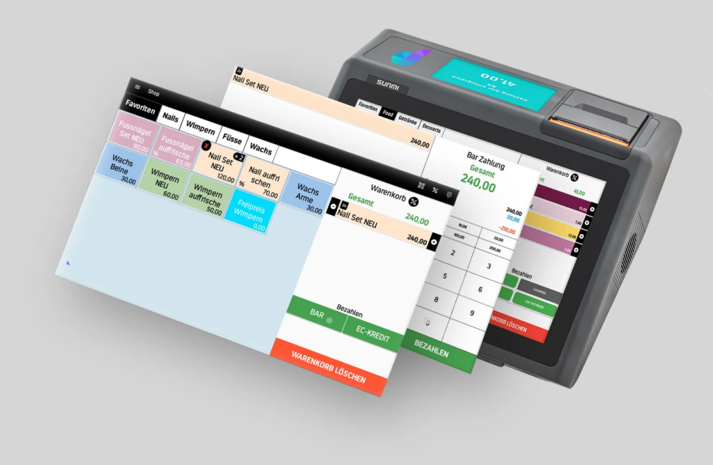 Cette solution repose sur une caisse mobile tout-en-un intégrant le logiciel de caisse Payfix, avec le paiement directement intégré sur le terminal.